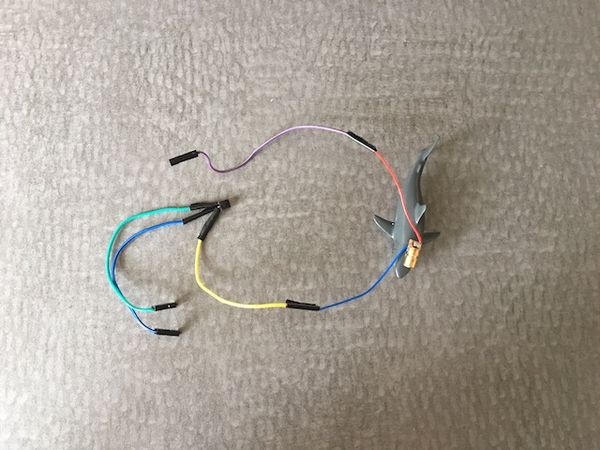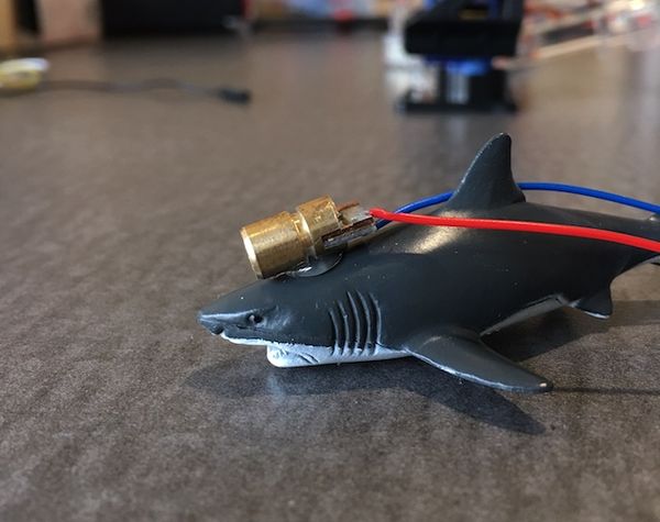 We now have a shark with a freakin' laser beam attached to it's head. Dr. Evil would be proud. It's time to set ourselves up with a physical push button so, later on, we can actually engage the cat laser pointer toy at the press of this button.